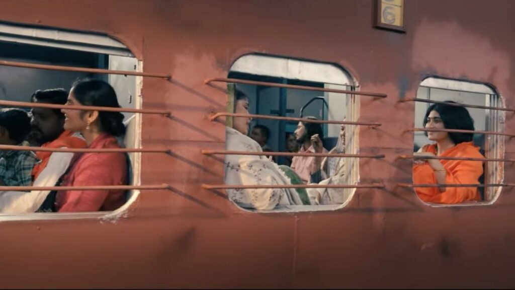 Song starts with the Ram Leela stage as a backdrop. Immediate after that, a group of people are shown in a train where a lady is singing this Ram bhajan, and other people in the coach are also enjoying and chanting the Ram bhajan with her. In between the Ram Leela stage programs are also seen. It seems that the Ram bhakts or the Bhajan mandali is going somewhere in the same train.